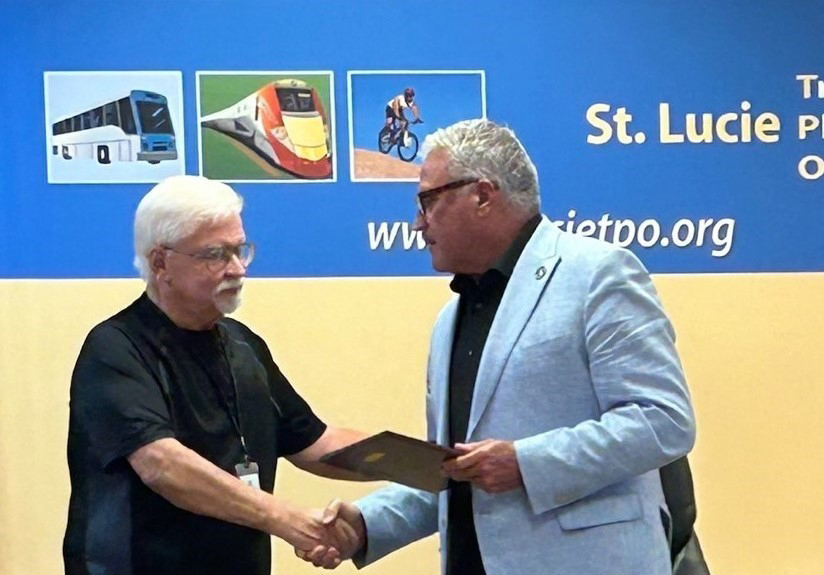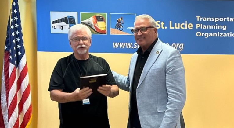 At its meeting on October 2nd, St. Lucie TPO Chairman Chris Dzadovsky and the Board expressed their appreciation for outgoing Board Member Jack Kelly for more than 16 years of service to the TPO and dedication to addressing the transportation needs of the community representing the Port St. Lucie City Council and the St. Lucie County School Board.